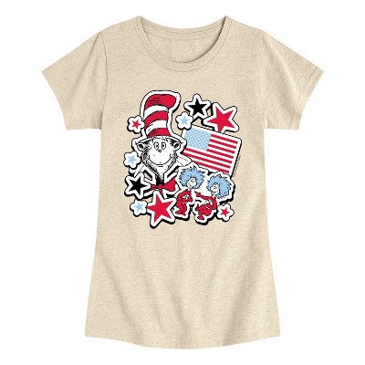 Girls' - The Cat in the Hat - Americana Stickers Fitted Short Sleeve Graphic T-Shirt