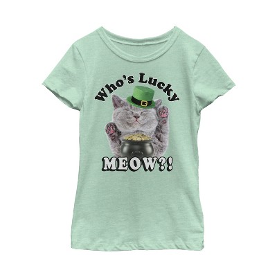 Girl's Lost Gods St. Patrick's Day Lucky Meow Cat T-Shirt