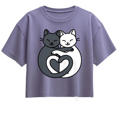 Girls' - Instant Message - Cat And Flowers Fitted Short Sleeve Graphic T-Shirt