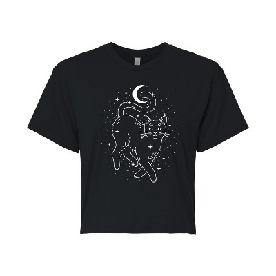 Women's - Instant Message - Star Cat Cropped Graphic T-Shirt