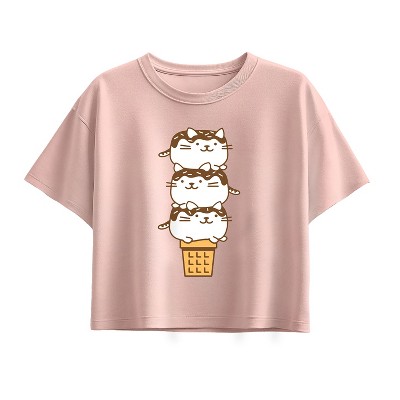 Girls' - Instant Message - Kawaii Cat Ice Cream Cone Short Sleeve Boxy Graphic T-Shirt