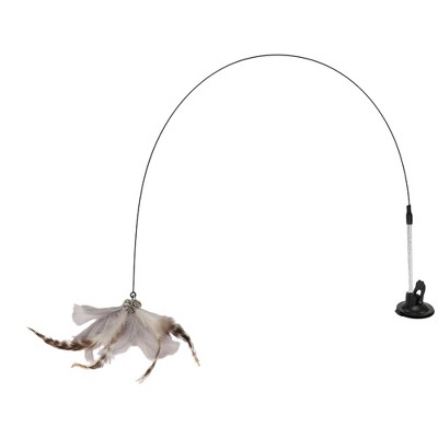 Unique Bargains Cat Teaser with Suction Cup and Bell Fluffy Plume Teasing Sticks Gray Brown