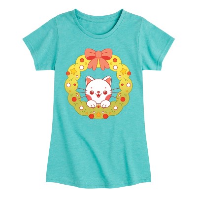 Girls' - Instant Message - Kawaii Cat Cupcake With Sprinkles Fitted Short Sleeve Graphic T-Shirt