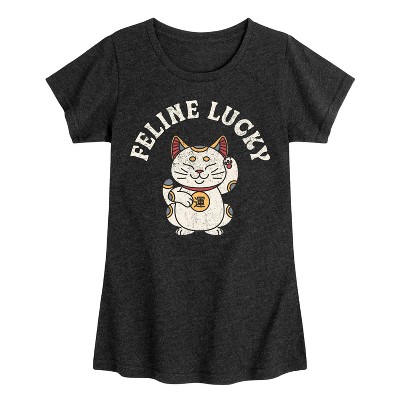 Girls' - Instant Message - Feline Lucky Cat Fitted Short Sleeve Graphic T-Shirt