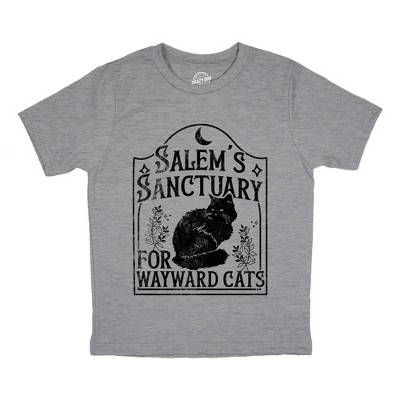Youth Funny T Shirts Salems Sanctuary for Wayward Cats Sarcastic Halloween Kitten Graphic Novelty Tee For Kids - Crazy Dog Youth T Shirt For Halloween