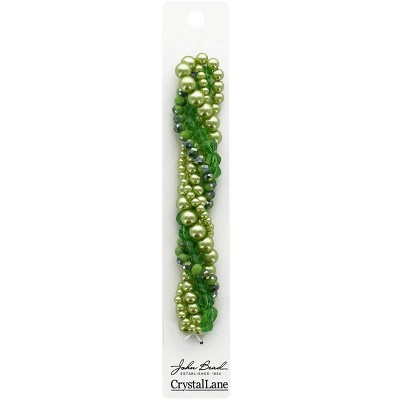 Crystal Lane DIY 5 Twisted Pearls & Crystal Bead Strands Zinnia Green Beads