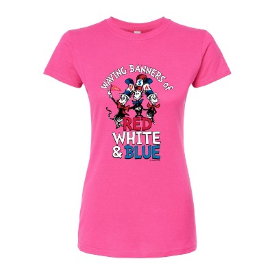 Women's - Dr. Seuss - Cat in the Hat Waving Banners Red White Blue Fitted Graphic T-Shirt