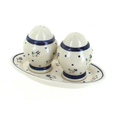 Blue Rose Polish Pottery 42 Vena Salt & Pepper Shakers with Tray