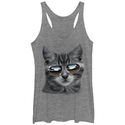 Women's Lost Gods Cat in Aviator Sunglasses Racerback Tank Top