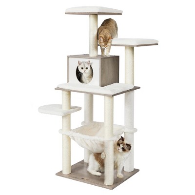 Feandrea WoodyWonders Cat Tree, Cat Tower for Indoor Cats, 54.3-Inch Multi-Level Cat Condo, Scratching Posts, Hammock, Removable, Washable Cushions