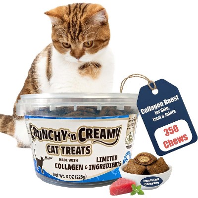 Fieldcrest Farms Nothin’ to Hide Collagen Cat Treats – Crunchy & Creamy Cat Snacks, Tuna Flavor, 8oz Tub.