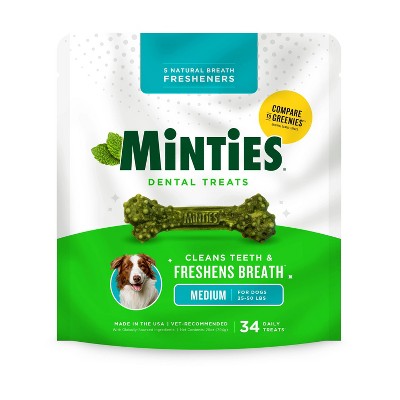 Minties Peppermint Flavor Dental and Hard Chews Dog Treat - Medium - 28oz/34ct