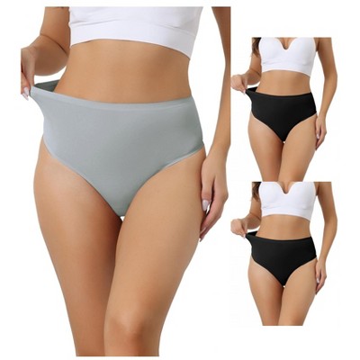 Allegra K Women's High-Waisted Invisible Stretchy Comfortable Thongs 3 Packs