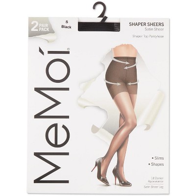 Memoi 2 Pair Women's Satin Sheer Shaper Top Pantyhose