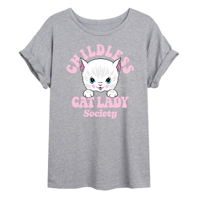 Women's - Instant Message - Childless Cat Lady Society Oversized Graphic T-Shirt