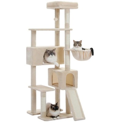 FONTOI Pet Tower with Multi-level Design, Cat Condo, Scratching Post, Dangling Toys, Cat Stair for Home Cat Entertainment, Beige, 62.01"*19.69"*19.69"