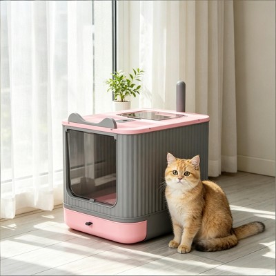 2 in 1 Cat Furniture Side Table with Hidden Litter Box Enclosure and Storage for 2 Small to Medium Cats, Natural