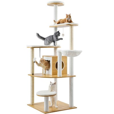 Chery Life 64" Multi-Level Cat Tree with Cat House, Hammock, Scratching Posts, Ideal for Multiple Cats 64in
