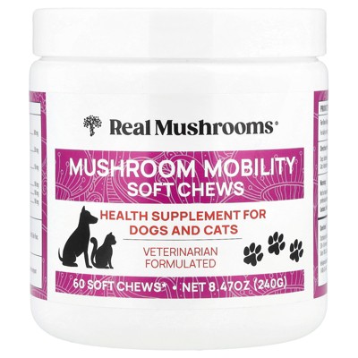 Real Mushrooms Mushroom Mobility Soft Chews, For Dogs and Cats , 60 Soft Chews, 8.47 oz (240 g)