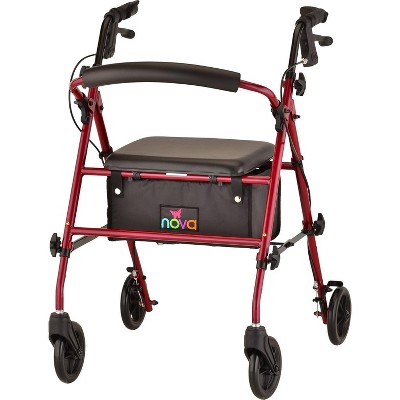 Nova Journey Rolling Steel Walker Folding Rolling Walker with Front Wheels Adjustable Height Mobility Support Red