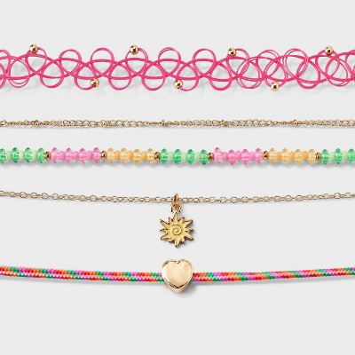 Girls' 5pk Sun and Heart Choker Set - Cat & Jack™ Pink/Multi