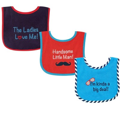 Luvable Friends Baby Boys Cotton Terry Drooler Bibs with PEVA Back 3pk, Handsome, One Size