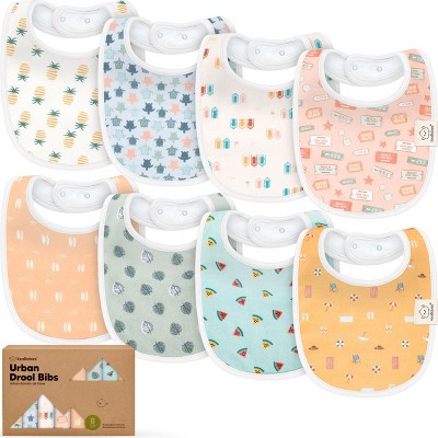 The Peanutshell Unisex Terry Cotton Baby Bibs, 8-Pack, Geen/Blue/Yellow