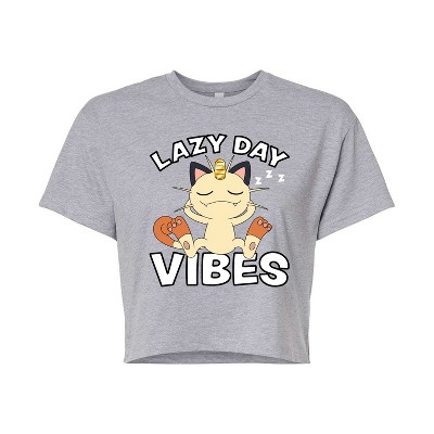 Women's - Pokémon - Lazy Day Vibes Meowth Cropped Graphic T-Shirt