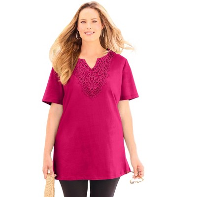 Catherines Easy Fit Embroidered Notch-Neck Tunic