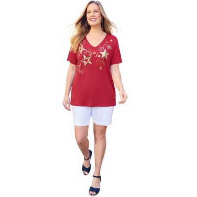 Catherines Petite Suprema Embroidered Notch-Neck Tee