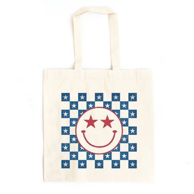 City Creek Prints Patriotic Smiley Stars Canvas Tote Bag - 15x16 - Natural