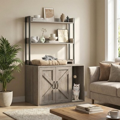 KTMBDW Litter Box Enclosure with 2 Storage Shelves, 2-in-1 Hidden Cat Litter Box Enclosure Furniture with Shelf, 52-Inch