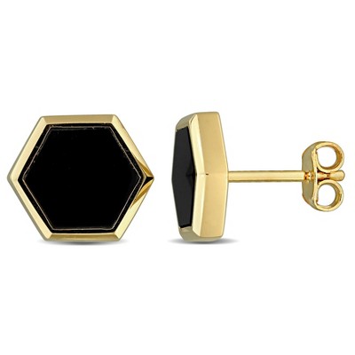 EVERLY JEWELRY | Yellow Plated Sterling Silver 4 1/5 CT TGW Black Onyx Hexagon Stud Earrings