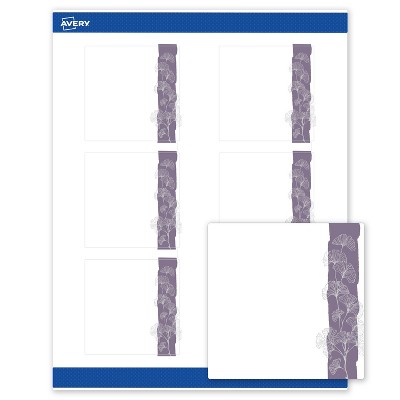 Avery Square Labels, Floral Design, 3" x 3", 60ct, Matte, Purple and Silver Gingko Leaves