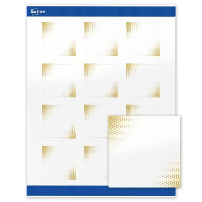 Avery Square Labels, Black with Gold Pattern, 2" x 2", Glossy, Black Border with Gold Veins