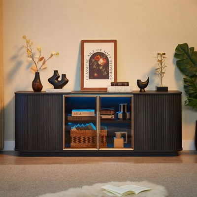 ORRD 64" Wavy TV Stand with Glass Doors, Black Sideboard Cabinet