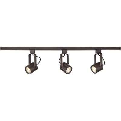 Pro Track Layna 3-Head LED Ceiling or Wall Track Light Fixture Kit Linear Bullet Spot Light Brown Bronze Finish Metal Modern Kitchen Bathroom 44" Wide