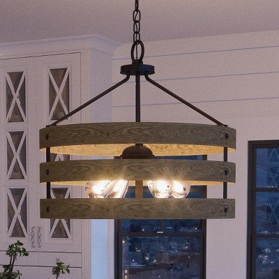 16" Walnut Industrial 4-Light Pendant Chandelier ¨C Adjustable Cage Lighting (No Bulbs)