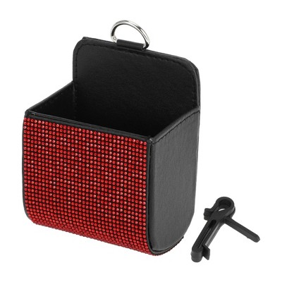 Unique Bargains Universal Car Trash Can Hanging Trash Bin Faux Leather Rhinestones 1 Pcs Black Red