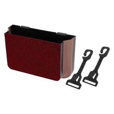 Unique Bargains Car Trash Can Portable Front Seats Trash Bin Red 1 Pc 9.8" Length 3.2" Width 6.3" Height Faux Leather