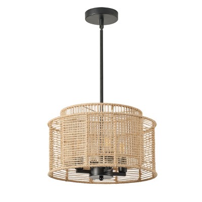 Modern Farmhouse Drum Chandelier, Handwoven Natural Rope Pendant Light for Bedroom or Entryway