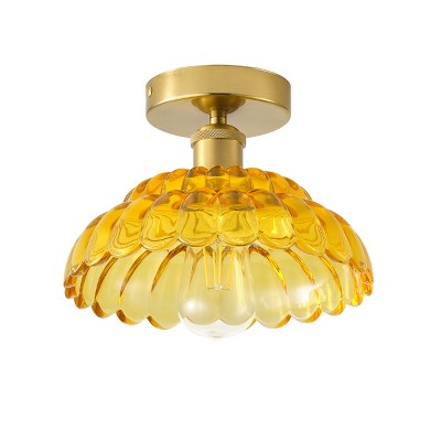 Dewdrop Vintage Green Glass Semi Flush Mount Ceiling Light 1 Light Faceted Cut Texture Brass Finish ETL Listed Art Deco Lighting for Bedroom