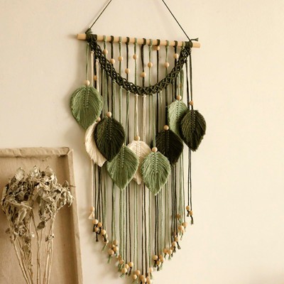 Aoibox Handmade Sage Green Leaf Macrame Wall Hanging, Boho Decor for Bedroom Living Room Bathroom, Earthy Room Decor, Wedding Birthday Gift