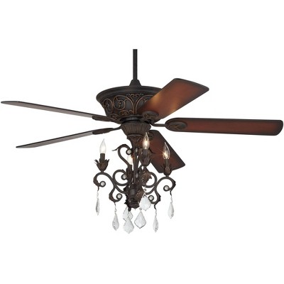 52" Casa Vieja Vintage Indoor Ceiling Fan with Light LED Chandelier Dark Bronze Copper Shaded Cherry Blades for Living Room Kitchen