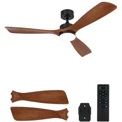 Aoibox 52 Inch Wood Ceiling Fan with Lights and Remote, 6 Speed Reversible DC Motor, 3CCT, for Indoor Outdoor Farmhouse Patios, Walnut