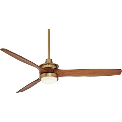 Casa Vieja 52" Windspun Modern Indoor Ceiling Fan 3 Blade LED Light Remote Control Soft Brass Finish Motor Walnut Wood Blades Bedroom Living Room