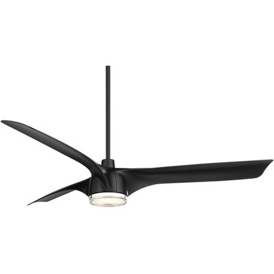 Casa Vieja 60" Artistry Modern Indoor Outdoor Ceiling Fan 3 Blade LED Light Remote Control Matte Black Finish Bedroom Patio Living Room Damp Rated