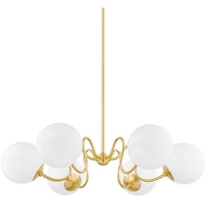 Mitzi Havana 6 - Light Chandelier in Aged Brass Opal Glossy Shade