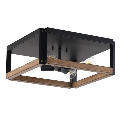 Dewdrop 4-Light Square Flush Mount Ceiling Light, Modern Black and Brass Industrial Fixture for Kitchen or Hallway