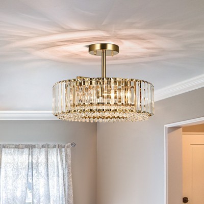 LLHZSY 4-Light Gold Round Crystal Ceiling Chandelier Fixture-15 7/10" Wide